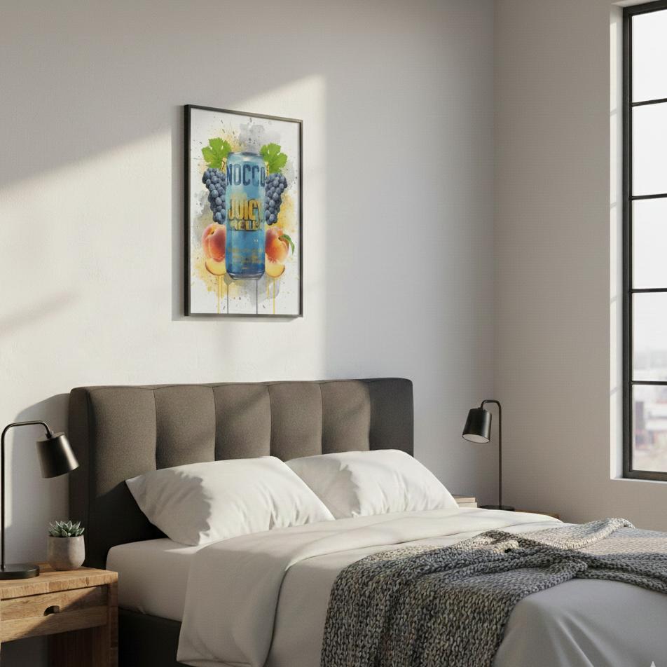 Ge dina väggar en modern och urban känsla med vår NOCCO Juicy Melba-poster. Denna unika konstposter är tryckt på matt premiumpapper och föreställer en stilren illustration av den ikoniska NOCCO-burken, kombinerad med konstnärliga detaljer och tydliga street art-vibbar. Perfekt för dig som vill addera färg, energi och attityd till ditt hem eller kontor.